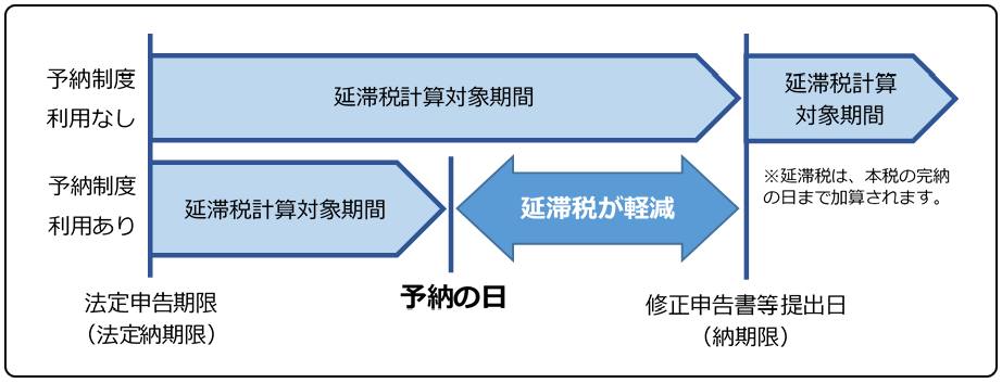 ※ 法定申告期限から1年以内に修正申告等を行う場合は、延滞税の計算は予納した日までとなり、延滞税の額が少なくなります。